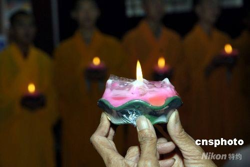 圖:少林寺僧人為四川地震遇難同胞祈福