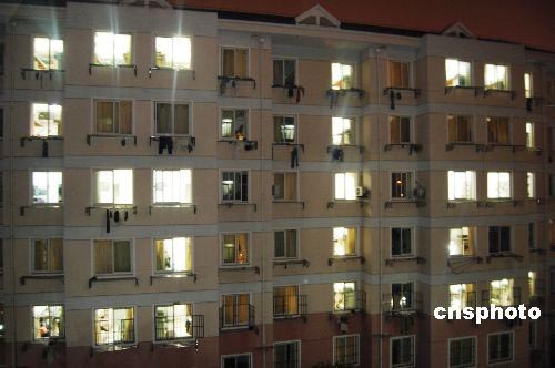 五月十九日夜晚,復旦大學校園內的一幢學生宿舍樓內,學生們用各自房間燈光的明滅構成“五·一二”字樣,以悼念在五月十二日發生的汶川大地震中遇難的同胞。中新社發 段更強 攝