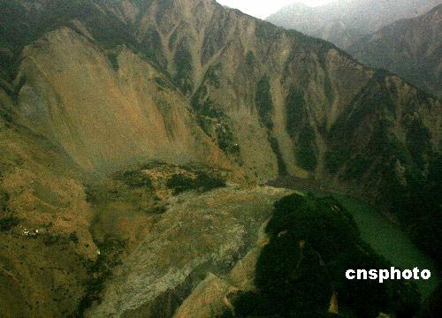 圖:汶川地震大山崩塌形成危險(xiǎn)的堰塞湖