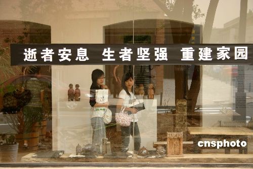 5月20日,北京市798藝術園區內的部分商家為了表達自己對四川災區的關切之情,在店鋪的門口掛上了賑災標語。