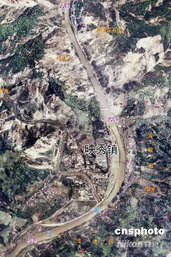 5月22日,國務院新聞辦公室就四川汶川地震災害和抗震救災情況舉行第十次發布會,國土資源部副部長贠小蘇介紹國土資源部門防范次生地質災害工作情況,并答記者問。贠小蘇介紹,這次特大地震發生在青藏高原東緣龍門山斷裂帶,重災面積達10萬平方公里。四川、甘肅、陜西等受災嚴重的地區,山高、谷深、坡陡,是中國滑坡、崩塌、泥石流等地質災害高發區。據介紹,這次地震前,國土資源部對受災區域中的41個縣地質災害的隱患點進行過普查,查出地質災害隱患點4929處,其中,特大型地質災害隱患點158處、大型地質災害隱患點1271處、中型地質災害隱患點1817處,這些地質災害的隱患點威脅著94萬多人的安全。圖為汶川縣映秀鎮航空遙感地質災害影像圖。中新社發 杜洋 攝