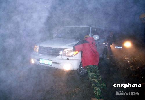 從5月21日晚至22日凌晨,中新社記者通過四川省雅安市的S210省際公路前往臥龍,海拔4000多米的夾金山頂峰被進出汶川地震重災區(qū)的大型貨車、救護車、轉(zhuǎn)移災民車等運輸車輛堵塞,采訪車多次深陷泥濘之中。由于目前通往汶川地震災區(qū)的被毀公路在修復后極為脆弱,因此這條過去不起眼的公路成為連結成都與汶川的生命線。中新社發(fā) 任晨鳴 攝
