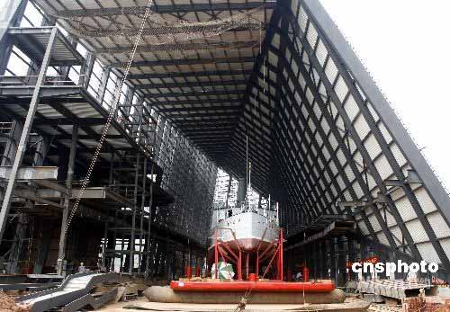 5月25日,經(jīng)過10天的搬遷,一代名艦中山艦終于抵達(dá)武漢金口中山艦博物館內(nèi),并將在此永遠(yuǎn)安家落戶,預(yù)計(jì)明年正式對(duì)外開放。中新社發(fā) 張暢 攝