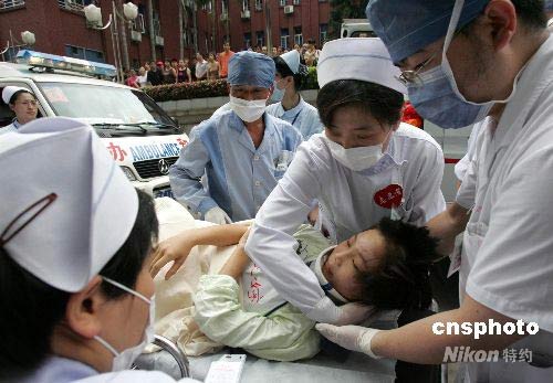 5月25日下午4時55分,從四川地震災(zāi)區(qū)轉(zhuǎn)運福建省救治的第一批20名傷病員,安全抵達(dá)福建醫(yī)大附屬協(xié)和醫(yī)院。福建省首批接收的110名地震災(zāi)區(qū)傷員,于25日下午和晚上分乘3架專機(jī)從成都飛抵福州。傷員們分別安排在南京軍區(qū)福州總醫(yī)院、省立醫(yī)院、福建醫(yī)大附屬協(xié)和醫(yī)院、福建醫(yī)大附屬第一醫(yī)院、省人民醫(yī)院、福州市第一醫(yī)院等6家醫(yī)院救治。中新社發(fā) 楊婀娜 攝