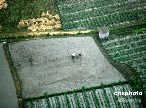 五月下旬, “天府之國”四川成都正值搶收小麥油菜和搶種水稻的關鍵時刻,受災農民一邊防震一邊辛勤勞作。中新社發 賈國榮 攝