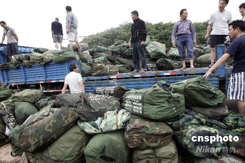 5月29日,受唐家山堰塞湖潰壩險情影響,綿陽市游仙區沈家壩東街社區居民陸續撤離至富樂山高地。圖為一批帳篷運送到位。中新社發 杜洋 攝