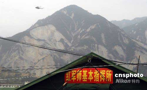 6月2日下午,多支解放軍部隊官兵調集四川汶川映秀山區,從空中、地面展開立體搜尋失事直升機任務。中新社發 陳文 攝