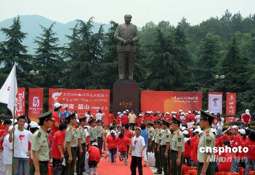 6月5日,奧運圣火湖南湘潭、韶山站傳遞結束慶典,在韶山的毛澤東銅像廣場舉行。儀式結束后,民眾仍久久不愿離去。中新社發 廖攀 攝