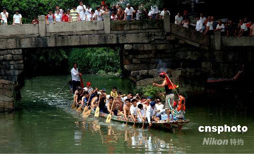 6月6日,福州臺江南公萬壽村村民按當地百年民俗在環村內河舉行端午龍舟競渡。據當地老輩村民稱,自清朝道光年間開始,該村就有端午節龍舟競渡風俗,沿襲至今。中新社發 劉可耕 攝