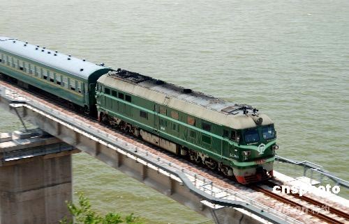 中國國家重點工程——銅(陵)九(江)鐵路7月1日正式開通運營。 這也是首條橫跨中國最大淡水湖鄱陽湖的鐵路。圖為一列客車從銅九鐵路鄱陽湖鐵路特大橋上向九江方向駛去。中新社發 胡國林 攝
