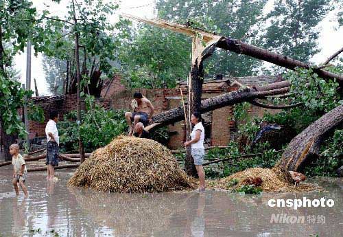 7月1日,淮北市百善鎮被龍卷風摧毀的樹木。當日下午14:40分,安徽淮北市四鋪鄉、百善鎮、趙集鎮、古繞鎮等地出現龍卷風、雷雨冰雹天氣,瞬間風力達12級以上。災情發生后,淮北市緊急啟動自然災害救助預案,電力、交警、消防等部門救援人員全力投入抗災救災工作。中新社發 王璋聞 攝