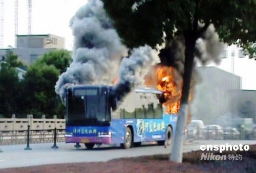2008年7月6日下午16點58分,蘇州市一輛公交車在盤門路上行駛時突然發(fā)生自燃,蘇州消防特勤二中隊接警后迅速趕到現(xiàn)場將大火撲滅。據(jù)悉,該公交車自燃時車上乘客已全部安全下車,事故未造成人員傷亡。中新社發(fā) 朱子寒 攝