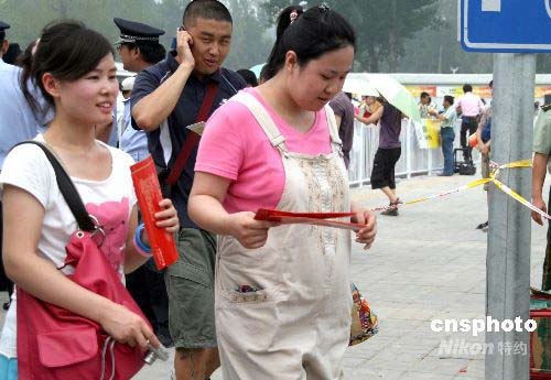 圖:孕婦不畏酷暑購買奧運門票