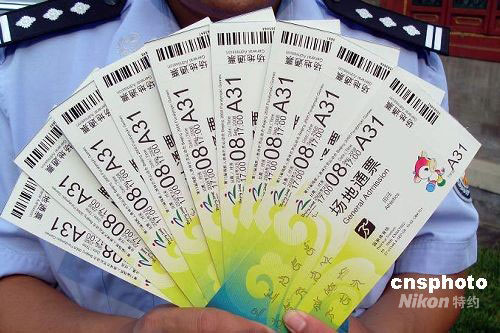 近日,北京海淀警方抓獲一向游客高價倒賣殘奧會門票的違法行為人王某,收繳鳥巢殘奧會田徑比賽通票10張。此案目前正在進一步審理中。中新社發 海宣 攝