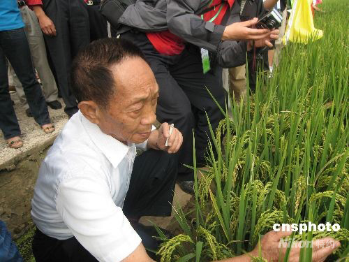 9月17日,“雜交水稻之父”袁隆平在昆明出席第五屆中國雜交粳稻科技創新論壇開幕式后,前往昆明嵩明縣考察雜交粳稻新品種云光一0一號千畝示范田。