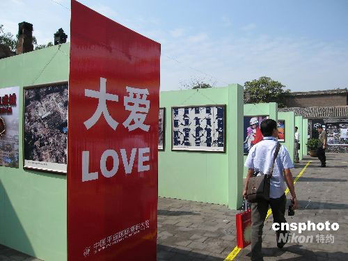 為紀念四川大地震,攝影展專設了特別展區展出了抗震救災的諸多感人的照片。