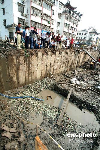 9月下旬,記者來到河下古鎮城河水道開挖工地現場,看到大量同種青瓷碎片裸露在距地表3米多深的河底,有一些已被挖掘機抓到地面臨時隔離起來。區有關部門已著手制訂考古方案,并對發掘現場落實了有效的保護措施。中新社發 李正林 攝