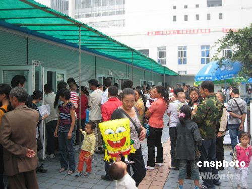 9月21日上午,首都-什邡對口支援醫(yī)療衛(wèi)生隊第二次向四川省什邡市人民醫(yī)院增派3名隊員,至此,該隊先后兩次共增派7名隊員支援該院,加上原在該院工作的3名隊員,共有10名首都醫(yī)療隊員幫助該院開展食用“問題奶粉”的兒童篩查工作。 中新社發(fā) 張正尤 攝
