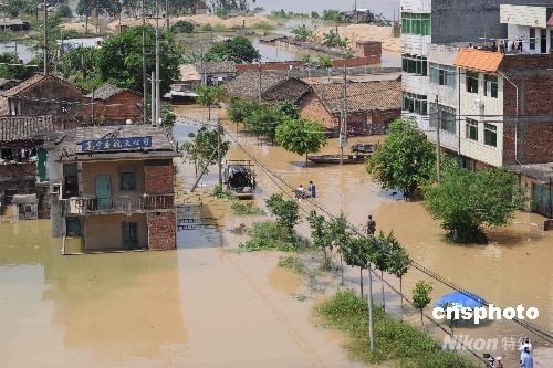 邕江南寧市洪峰將抵邕寧區蒲廟河段九月二十八日十二時洪水水位達七十點九三米,超過警戒水位五點九三米。邕寧區政府所在地蒲廟鎮大街上已有多處被洪水浸泡。二十九日十七時前后邕江洪峰將抵蒲廟鎮,洪峰水位達七十三點五零米,屆時蒲廟鎮主城區將有一點五萬人需撤離,蒲廟鎮周邊將有十萬民眾需轉移。中新社發 蔣雪林 攝