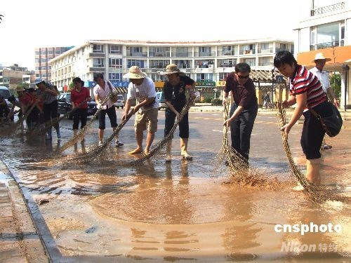 截至10月2日下午13時,邕江南寧市邕寧區(qū)蒲廟河段水位為70.54米,比9月30日最高水位71.96米下降1.42米,洪水逐漸消退。當(dāng)?shù)馗鳈C關(guān)單位干部職工放棄國慶休假,投入到清掃垃圾、清除淤泥和噴灑消毒劑等災(zāi)后恢復(fù)工作中。劉秋明 攝