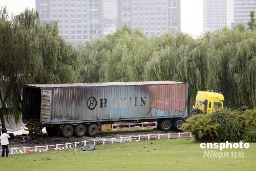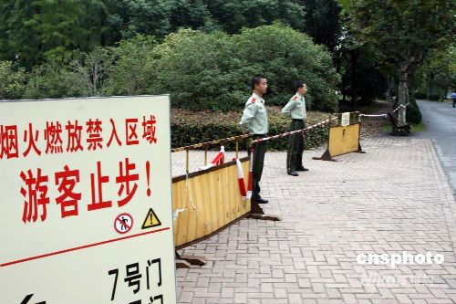 10月5日中午12時30分左右,上海市浦東新區(qū)世紀公園7號門附近發(fā)生一起煙花爆炸事故,1名煙花技師在搬運煙花裝車的過程中,煙花突然在車廂內發(fā)生爆炸,致其當場死亡,所幸無游客傷亡。據警方初步調查,該煙花技師姓卜,湖南瀏陽人。9月30日、10月3日、10月6日,上海世紀公園舉辦三個音樂煙花節(jié)表演,大量煙花堆積在燃放區(qū)域。中新社發(fā) 宣克炅 攝
