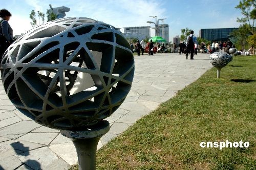 2008年10月11日,免費對外開放的國家體育場“鳥巢”,在周末出現(xiàn)游客“井噴”。“鳥巢”在被20萬多游客“擠爆”的同時,遭受了不文明行為傷害,安裝在國家體育場(“鳥巢”)旁廣場的“鳥巢”照明燈傷痕累累。據(jù)介紹,“鳥巢”景觀燈材質(zhì)采用環(huán)保樹脂材料,奧運前夕,“鳥巢”廣場核心區(qū)安了1300多只景觀燈,大“鳥巢”與小“鳥巢”交相呼應(yīng),營造出和諧氛圍。中新社發(fā) 梁寶海 攝