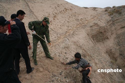 拜城縣野外旅游探險(xiǎn)愛(ài)好者、拜城縣國(guó)資局副局長(zhǎng)徐作寬等聞?dòng)嵑螅⒓绰?lián)系其他兩位“驢友”喬軍和王新疆,并臨時(shí)買來(lái)150米救援繩索,火速趕到現(xiàn)場(chǎng),與先期抵達(dá)的救援人員一道勘察地形制定出了救援方案。