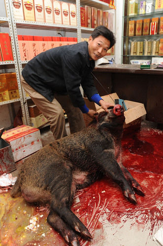 2008年10月23日,安徽省桐城市警方將闖進小鎮商店的三頭野豬擊斃。當天早晨,3頭野豬闖進桐城市青草鎮,連傷4人,當地警方接警后將這“一家三口”擊斃。