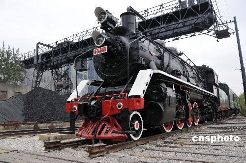 10月29日,在北京798藝術區(qū),鐵道部唐山機車車輛工廠于1971年1月生產(chǎn)的火車頭成為一大亮點,人們紛紛前來拍照留念。中新社發(fā) 馮軍(北京) 攝