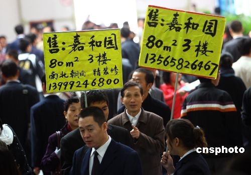 11月1日,新疆(秋季)房地產人居博覽會在烏魯木齊召開,眾多當地精品樓盤齊聚博覽會。由于近期房價回落,本屆房產博覽會吸引了大批準備購房的市民前來一探究竟。圖為博覽會現場一些房產公司工作人員手舉“二手房廣告”在購房者中間穿梭。中新社發 劉新 攝