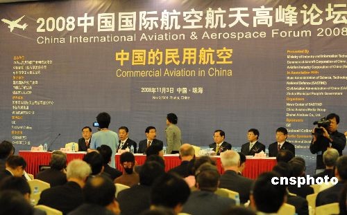 十一月三日,珠海航展開幕前夕,由中國工業和信息化部、中國商飛公司、中國航空工業集團公司共同主辦的二零零八中國國際航空航天高峰論壇在珠海舉行,論壇分“中國民用航空發展線路圖”、“通用航空與區域航空的發展”兩個單元,中外航空航天界近三百名精英人士相聚一堂,共商未來發展大計。中新社發 孫自法 攝