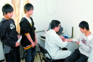 5日上午,剛從北京某高級技術學院畢業的三胞胎兄弟隗亞軍、隗運軍、隗會奇,一起來到西城區體檢定點醫院參加體檢。弟弟隗會奇告訴記者:“我們哥仨從小就向往軍營。今年畢業正趕上部隊優先招收高學歷應屆畢業生參軍,就和大哥、二哥一同報了名。父母也很支持,鼓勵我們到部隊去鍛煉幾年。”(文 王皓 攝 丁正泉)