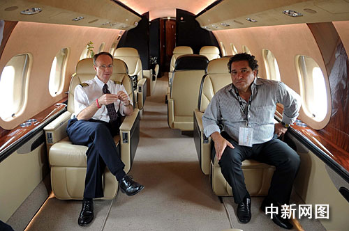 在第七屆中國國際航空航天博覽會上,“環球快車”、“豪客4000”等公務機成珠海航展亮點,不少商家、媒體記者登機體驗。作 者:陳文