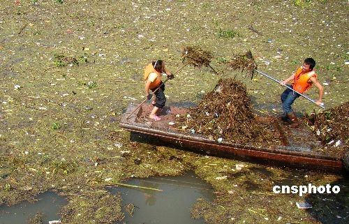 11月10日,重慶市云陽縣環衛部門組織的清漂隊伍在三峽水庫腹心江面緊急打撈。最近一兩天來,大量漂浮垃圾涌入完成試驗性蓄水任務的三峽水庫,在庫區湖灣地帶匯集形成觸目驚心的“垃圾陣”。自三峽工程開展175米蓄水以來,庫區水質和航運正常,生態監測情況良好。但由于受前期三峽庫區大范圍降雨和季風氣候影響,庫區支流、河叉大量漂浮垃圾涌入三峽水庫,在交匯、回水、湖灣等區域集而不散。目前,水庫沿線各區縣啟動緊急應急清漂預案,采取增投力量,人工、機械打撈相結合的辦法,全力清漂,確保安全。中新社發 饒國君 攝