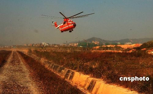 11月15日,隨著一架米-26TC直升機降落梧州機場,拉開了2008年廣西秋冬季森林航空消防序幕。本次共有3架大型直升機加入廣西秋冬季航空森林消防工作,這是國家林業(yè)局西南航空護林總站首次動用如此規(guī)模力量支持廣西航空護林。它們將航空護林范圍覆蓋廣西的南寧、柳州、來賓、桂林等,同時向湖南、廣東輻射。中新社發(fā) 謝志剛 攝