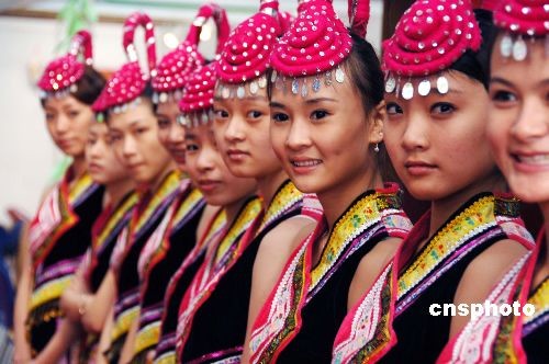 十一月十七日,一家座落于畬族地區(qū)、業(yè)界知名度頗高的茶企業(yè),請來一群美貌畬族姑娘在福建武夷山“第二屆海峽兩岸茶業(yè)博覽會”展覽館里出任企業(yè)產品形象大使,亦為茶博會增添了一道亮麗的風景線。中新社發(fā) 鄭祚聲 攝