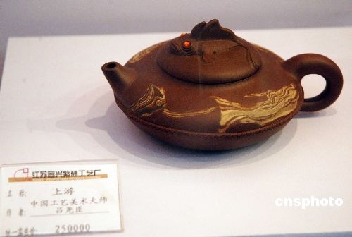 2008年11月18日,福建武夷山第二屆海峽兩岸茶業博覽會上,來自江蘇宜興售價高達250000元的天價紫砂壺吸引了許多紫砂壺愛好者前來觀賞。中新社發 張 斌 攝