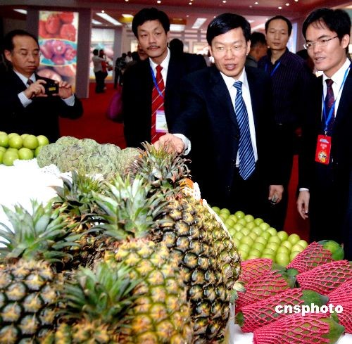 11月19日,第十屆海峽兩岸(福建漳州)花卉博覽會、二00八年臺灣農產品博覽會進入第二天。在臺灣農產品博覽會展區通過兩岸“三通”路徑登陸福建漳州的十多種臺灣原產地水果,吸引了眾多來賓和民眾的目光。 中新社發 劉可耕 攝