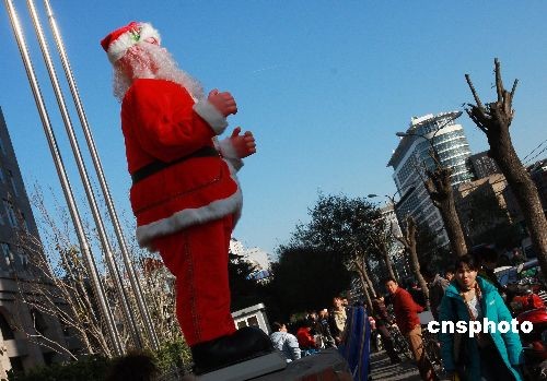 11月20日,可愛的“圣誕老人”北京街頭為來往的路人唱歌跳舞。雖然離圣誕節(jié)還有一個(gè)多月,但是北京的圣誕氣氛漸濃,許多商家開始裝飾門面,迎接“購(gòu)物季”的到來,一場(chǎng)圣誕商戰(zhàn)正在悄然打響。中新社發(fā) 鄭雄增 攝