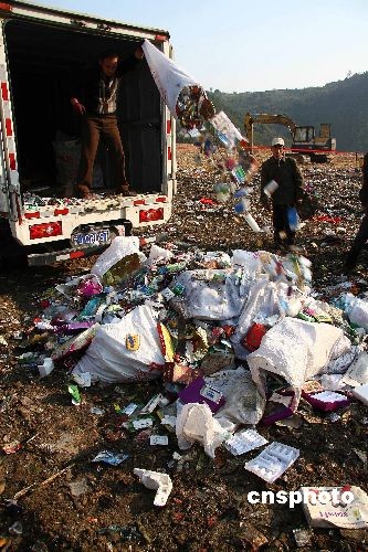 11月26日,浙江州一民企藥店在溫嶺生活垃圾處理場公開銷毀價值5萬多元的過期藥品,這是該公司今年第二次銷毀過期藥品。自三鹿奶粉中發現三聚氰胺事件后,食品安全越來越受到人們的關注和重視,作為臺州境內較有影響的藥品銷售企業,該藥店自覺嚴格按照《藥品管理法》的要求,分類整理庫存藥品,最近共整理出感冒藥、抗菌藥等過期藥品500多公斤,總價值5萬多元。中新社發 劉振清 攝