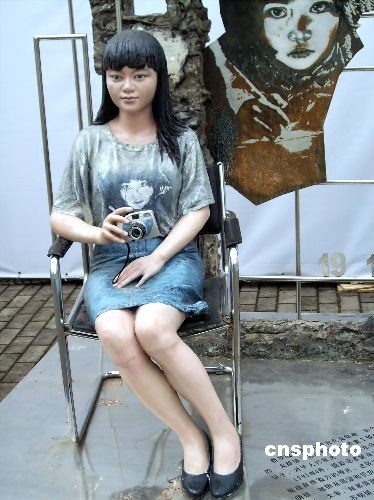 2008年11月26日,“中國姿態(tài)”首屆中國雕塑大展中展出雕塑作品《我的照片•我的夢》。作品中的小女孩就是中國希望工程的形象代表“大眼睛女孩”蘇明娟。中新社發(fā) 井韋 攝
