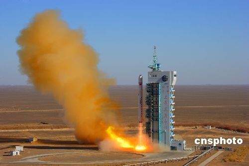 12月1日12時42分,中國在酒泉衛星發射中心用“長征二號丁”運載火箭將“遙感衛星四號”成功送入太空。中新社發 許海晗 攝
