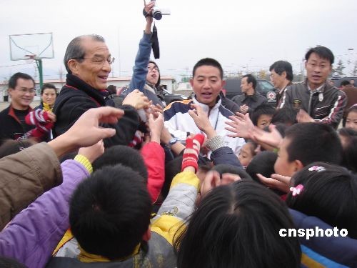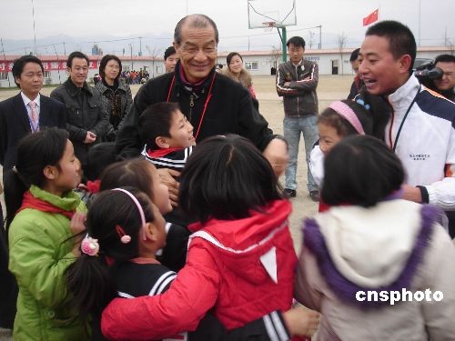 12月4日,海峽兩岸紅十字組織來到地震極重災區德陽綿竹市天河小學看望受災學生。