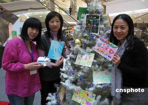 12月4日,一年一度滬上臺灣學子最大規模的“愛心義賣會”在上海南京路拉開帷幕。活動主辦方、擁有千名臺胞子女的上海中芯學校,將連續4天義賣1300余件臺灣孩童親手制作的愛心禮物,預估可募集約8萬元人民幣善款,悉數捐贈上海市紅十字會,用于救助大陸病童。圖為上海臺商太太展示自四川震區征集而來的臺胞家庭手繪新年賀卡等,參加愛心義賣。中新社發 許曉青 攝