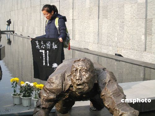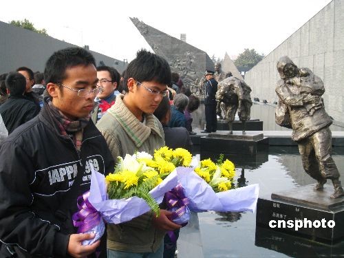 2008年12月13日是南京大屠殺遇難同胞71周年紀念日。南京許多大學生利用雙休日,自發來到侵華日軍南京大屠殺遇難同胞紀念館,和廣大市民一起悼念南京大屠殺遇難同胞。中新社發 谷昌旺 攝