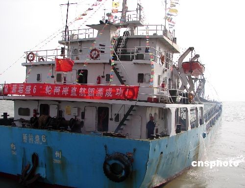 12月15日上午11時整,福建泉州開往臺灣本島的直航首航貨輪“成功七一”輪和“新運盛六”輪載著毛角石從泉州港起航,分別首航臺灣安平港和臺北港。中新社發 曾福志 攝