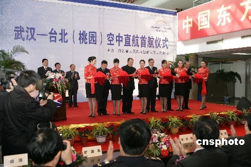 圖為湖北省省長李鴻忠等為首航儀式剪彩。