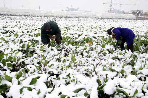 1月6日,湖北省枝江市市民正在采摘蔬菜。據(jù)氣象部門(mén)發(fā)布的信息表明,5日至6日,湖北省的西部地區(qū)普降中雪,省政府辦公廳已下發(fā)緊急通知,要求各市、州、縣人民政府,省政府有關(guān)部門(mén)認(rèn)真做好應(yīng)對(duì)低溫凍害工作。中新社發(fā) 柳月 攝