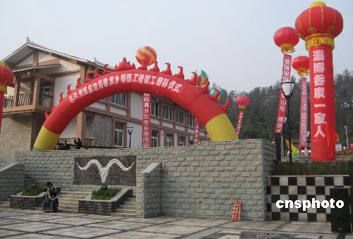 一月八日,四川地震災區首個異地重建鄉鎮——北川羌族自治縣香泉鄉舉行竣工儀式。“五·一二”特大地震中,北川陳家壩鄉、漩坪鄉和香泉鄉原場鎮遭受嚴重破壞,后又遭遇“九·二四”洪澇泥石流災害。經四川省政府批準,三個鄉進行原地異址重建。中新社發 肖青 攝