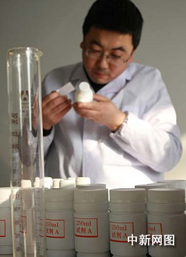 1月9日,檢測液態奶中是否含有三聚氰胺的化學法快速檢測試劑盒在蘭州上市。這項技術由蘭州大學研發,并于2008年11月7日通過了甘肅省科技廳組織的成果鑒定。生產商甘肅欣慶環保科技有限責任公司介紹,這種試劑盒不僅適用于乳品生產企業、基層奶站、基層質檢站等部門,而且可以進入家庭使用。據悉,日前,國內乳品公司已和生產商簽定了多批訂單,部分試劑盒即日發往省外。